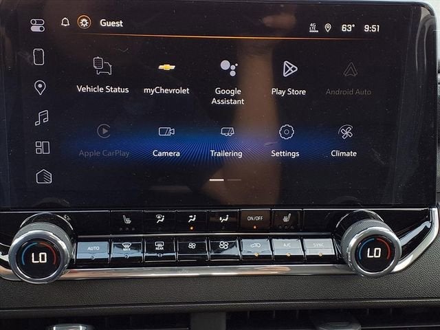 4WD, 3.42 Rear Axle Ratio, 4-Way Manual Passenger Seat Adjuster, 4-Wheel Disc Brakes, 6 Speakers, 6-Speaker Audio System Feature, 6-Way Manual Driver Seat Adjuster, ABS brakes, Air Conditioning, Alloy wheels, AM/FM radio: SiriusXM with 360L, Apple CarPlay/Android Auto, Auto High-beam Headlights, Automatic Emergency Braking, Automatic temperature control, Brake assist, Chevy Safety Assist, Cloth Seat Trim, Compass, Delay-off headlights, Driver door bin, Driver vanity mirror, Dual front impact airbags, Dual front side impact airbags, Electronic Stability Control, Emergency communication system: OnStar, Following Distance Indicator, Forward Collision Alert, Front anti-roll bar, Front Bucket Seats, Front Center Armrest, Front dual zone A/C, Front Pedestrian and Bicyclist Braking, Front wheel independent suspension, Heated door mirrors, Illuminated entry, IntelliBeam Automatic High Beam on/Off, Lane Keep Assist with Lane Departure Warning, Low tire pressure warning, Navigation System, Occupant sensing airbag, Outside temperature display, Overhead airbag, Overhead console, Panic alarm, Passenger door bin, Passenger vanity mirror, Power door mirrors, Power steering, Power windows, Radio data system, Radio: 11.3 Diagonal Advanced Color LCD Display, Rear reading lights, Rear step bumper, Rear window defroster, Remote keyless entry, Security system, SiriusXM with 360L Trial Subscription, Speed control, Speed-sensing steering, Split folding rear seat, Steering Wheel Mounted Audio Controls, Steering wheel mounted audio controls, Tachometer, Tilt steering wheel, Traction control, Trip computer, Variably intermittent wipers, Wheels: 18 x 8.5 Black High Gloss Aluminum, and Wireless Phone Projection. Awards: