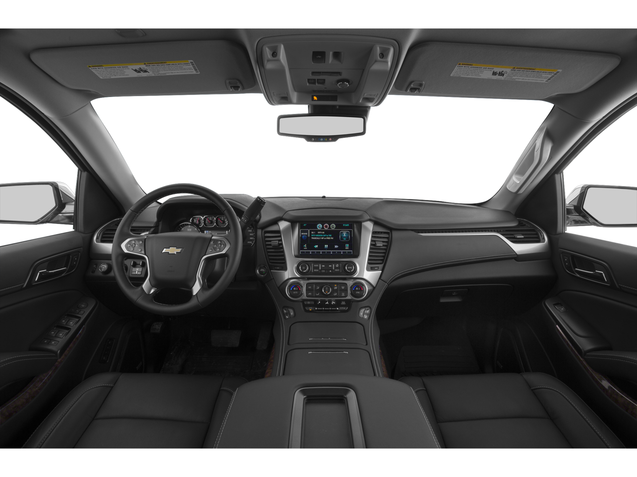 License Plate Front Mounting Package, Magnetic Ride Control Suspension Package, Max Trailering Package (3.42 Rear Axle Ratio and Integrated Trailer Brake Controller), Preferred Equipment Group 1LZ (3rd Row 60/40 Power Fold Split-Bench, 5 12-Volt Auxiliary Power Outlets, Auto-Dimming Inside Rear-View Mirror, Bose Centerpoint Premium 10-Speaker Surround Sound, Driver Inboard & Front Passenger Airbags, Floor Console, Fog Lamps, Forward Collision Alert, Front & Rear Parking Assist, Hands Free Power Liftgate, Heated 2nd Row Seats, Heated Leather Wrapped Steering Wheel, Heavy-Duty Rear Locking Differential, Keyless Start Switch, Lane Departure Warning & Safety Alert Seat, Memory Settings, Passive Entry System, Power Adjustable Pedals, Power Release 2nd Row Bucket Seats, Power Tilt & Telescoping Steering Column, Power-Folding Heated Outside Mirrors, Rear Cross-Traffic Alert, Remote Keyless Entry, Side Blind Zone Alert w/Lane Change Alert, Universal Home Remote, and Wireless Charging), Sun, Entertainment & Destinations Package (Power Sunroof and Rear Seat Blu-Ray/DVD Entertainment System), Tahoe LTZ, 4D Sport Utility, EcoTec3 5.3L V8, 6-Speed Automatic Electronic with Overdrive, RWD, Black, Jet Black Leather, 10 Speakers, 3.08 Rear Axle Ratio, 3rd row seats: split-bench, 4-Wheel Disc Brakes, ABS brakes, Adaptive Cruise Control w/Front Automatic Braking, Adaptive suspension, Adjustable pedals, Air Conditioning, Alloy wheels, AM/FM radio: SiriusXM, Auto-dimming door mirrors, Auto-dimming Rear-View mirror, Automatic temperature control, Bluetooth® For Phone, Bodyside moldings, Brake assist, Bumpers: body-color, CD player, Compass, Delay-off headlights, Driver door bin, Driver vanity mirror, Dual front impact airbags, Dual front side impact airbags, Electronic Stability Control, Emergency communication system: OnStar Directions & Connections, Exterior Parking Camera Rear, Front anti-roll bar, Front Bucket Seats, Front Center Armrest, Front Console Organizer, Front dual zone A/C, Front fog lights, Front Heated Reclining Bucket Seats, Front reading lights, Front wheel independent suspension, Fully automatic headlights, Garage door transmitter, Heated & Cooled Driver & Front Passenger Seats, Heated door mirrors, Heated front seats, Heated rear seats, Heated steering wheel, High-Intensity Discharge Headlights, Illuminated entry, Low tire pressure warning, Memory seat, Navigation System, Occupant sensing airbag, Outside temperature display, Overhead airbag, Overhead console, Panic alarm, Passenger door bin, Passenger vanity mirror, Pedal memory, Perforated Leather-Appointed Seat Trim, Power door mirrors, Power driver seat, Power Liftgate, Power passenger seat, Power steering, Power windows, Premium audio system: Chevrolet MyLink, Radio: Chevrolet MyLink w/Navigation/AM/FM Stereo, Rain sensing wipers, Rear air conditioning, Rear anti-roll bar, Rear reading lights, Rear window defroster, Rear window wiper, Remote keyless entry, Roof rack: rails only, Security system, Single-Slot CD/MP3 Player, SiriusXM Satellite Radio, Speed control, Speed-sensing steering, Split folding rear seat, Spoiler, Steering wheel memory, Steering wheel mounted audio controls, Tachometer, Telescoping steering wheel, Tilt steering wheel, Traction control, Trip computer, Turn signal indicator mirrors, VAC Power 4-Wheel Disc & 4-Wheel Antilock Brakes, Variably intermittent wipers, Ventilated front seats, Voltmeter, Wheels: 20 x 9 Polished-Aluminum, and Wheels: 22 Premium Painted w/Chrome Inserts. Awards: